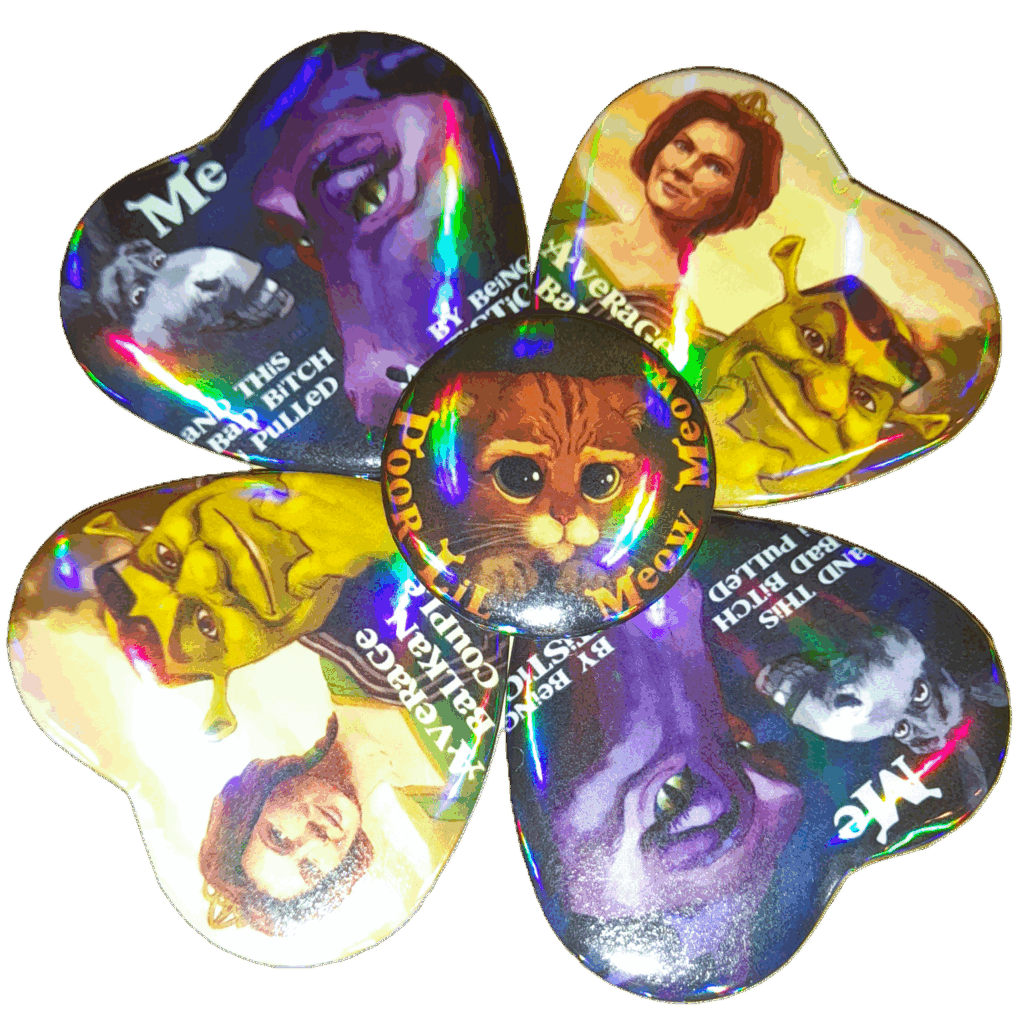 Hi I make silly lil stickers, pins, and keychains, as well as prints with blorbos from my shows